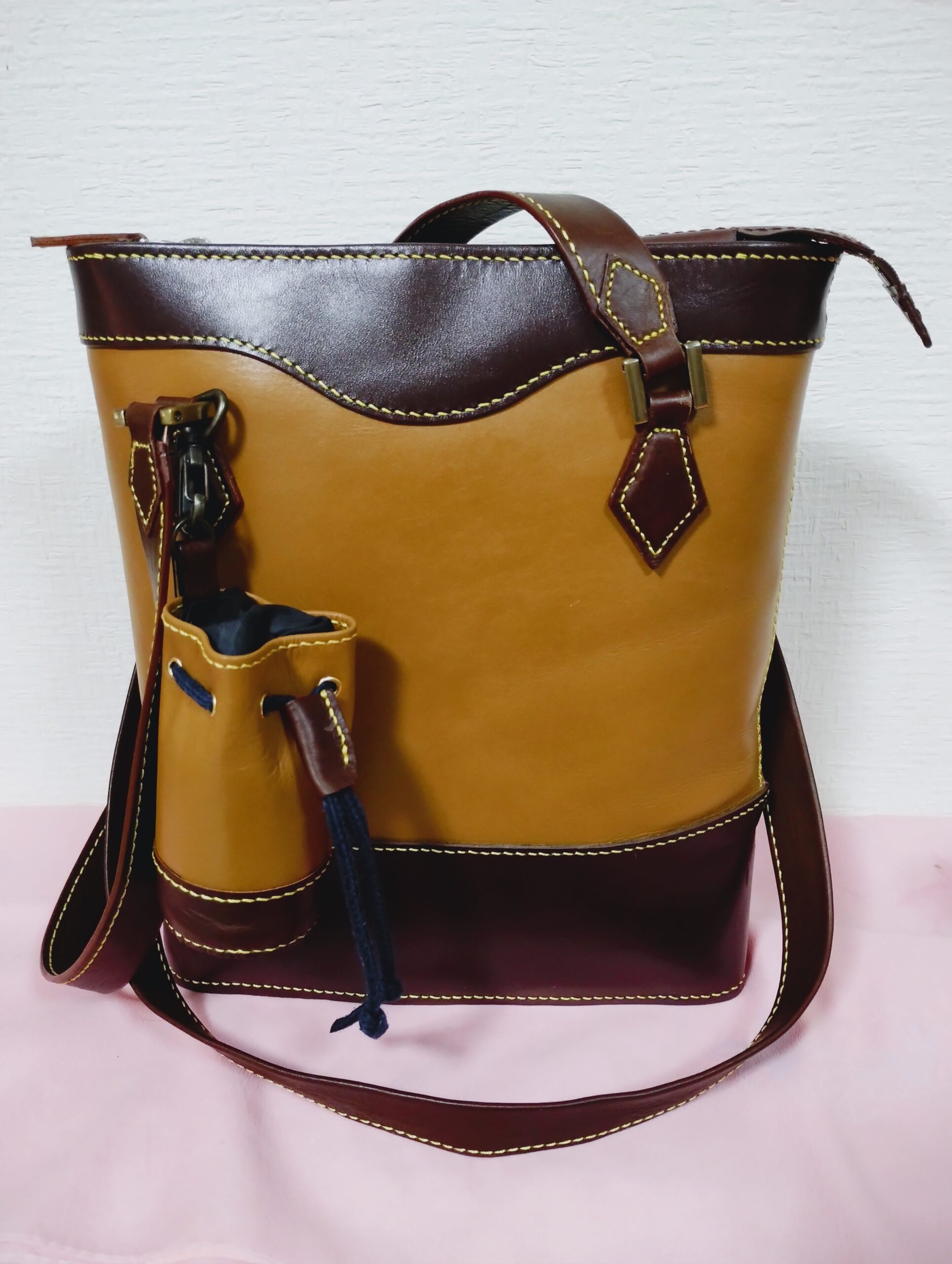 今流行の巾着バック型でデザインした。図面の制作から開始!
