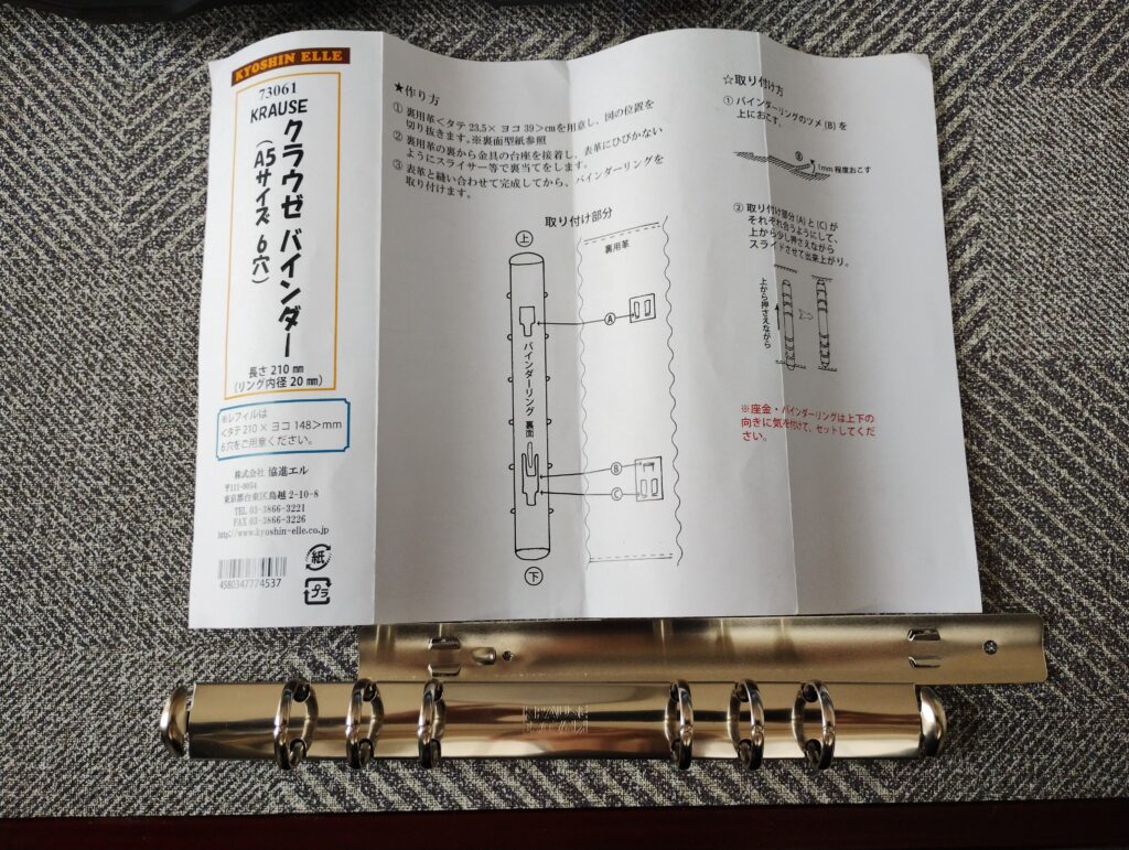 そこで、システム手帳用のA5サイズの6穴金具にした(ちなみにクラウゼ製)リングサイズ20mmφを購入し作成した。