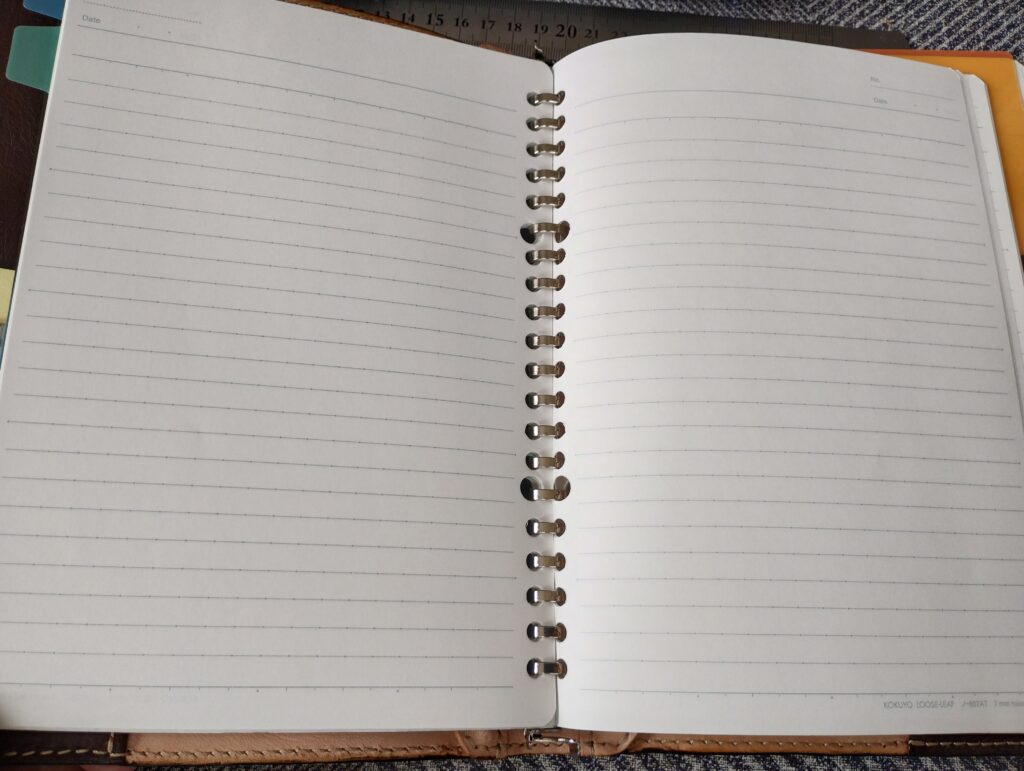 これは20穴バインダー金具の欠点も含まれるが、穴の数が多い点でめくる抵抗が大きくなる点とリング径の大きさによるものと推測できる。(今回15mmφを使用していた)