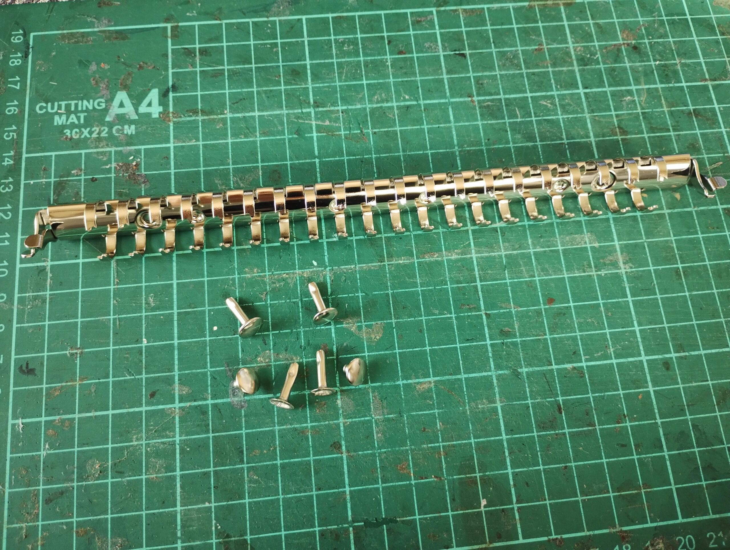 レザークラフト材料専門店ぱれっと A5サイズ(20穴)ニッケル長さ22cmリング径16mmカシメ付き 型番EG1026-01を484円で購入した。
